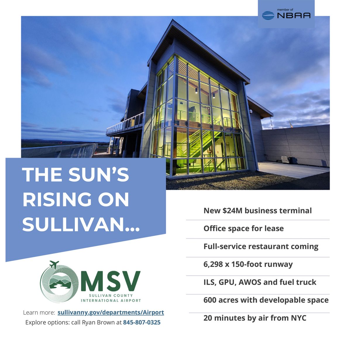 The intent is not to bring back scheduled airline service, since there’s plenty of options in and around the Hudson Valley. Rather, we’re seeking to promote Sullivan County International Airport to business aviation companies as a convenient, attractive, cost-effective alternative to the far more congested and expensive NYC airports.