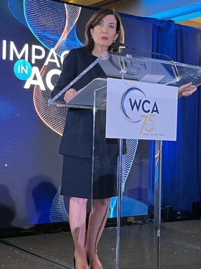 The governor, who hails from Buffalo – “Go Bills,” she said, giving a shoutout to the football team – recalled that when she was a student at The Catholic University of America Columbus School of Law, her mother, a homemaker and social activist, wanted to open a flower shop. Neither knew anything about starting a business and needed guidance – the kind of guidance that WCA and its members provide, Hochul said.