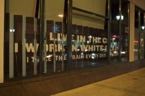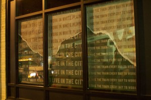 As part of a new White Plains Business Improvement District-sponsored program called Art in Vacant Spaces, design students at Purchase College and a poet combined forces to transform the look and feel of the empty glass panes in some of the busiest shopping corridors in the city.