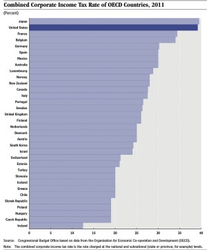 The top corporate tax rate in the U.S. is 35 percent. The average tax rate among developed countries in the Organization for Economic Cooperation and Development, excluding the U.S., is about 29 percent. Ireland”™s corporate rate is 12.5 percent.