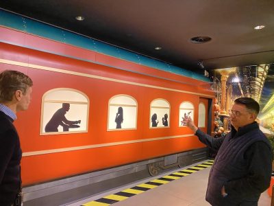On a tour of the 20,000-square-foot “experience” people are given a golden ticket for a train “ride” to the North Pole. That ride includes moving scenery behind the windows that gives the one illusion of traveling on a steam-powered train. Next stop is Santa’s workshop, a toy shop, glacier island complete with an ice sculpture, Mrs. Claus’ Gingerbread House Kitchen, Post Office, “Home Alone” and “Grinch” scenery, bakery and a nutcracker shop. There’s also a Holiday Wish Express store at the end of the ride.