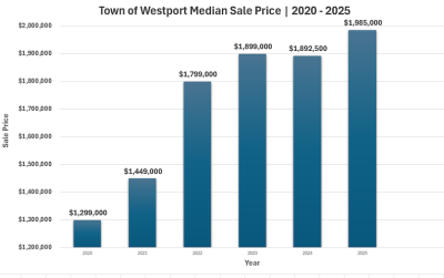 Consider a couple of examples of the spike in home value in Fairfield and Westport. According to a table released by the Town of Westport, the median sales price of a home in 2020 was $1.299 million compared to $1.985 million in 2025. That’s a 53% jump in value in just five years.