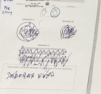 Before the procedure, Ewen was asked to complete an exercise that included drawing spirals and a line, as well as writing her name. Afterwards, she was asked to complete the same exercise, and the improvement was as clear as day. With her husband Ward by her side, Ewen expressed her appreciation for everyone involved.