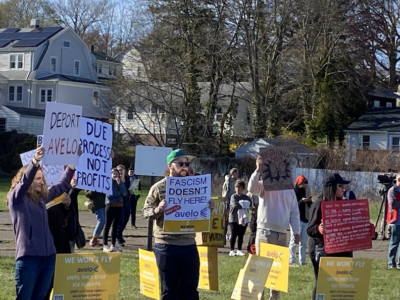 “I want to speak about business and corporations are benefiting from the deportation machine,” Luis Luna, a member of New Haven Immigrants Coalition (NHIC), said to a crowd of more than 100 protestors outside Tweed New Haven Airport on Thursday, April 17. “Avelo just got a contract. There are so many companies that are profiting from detention.”