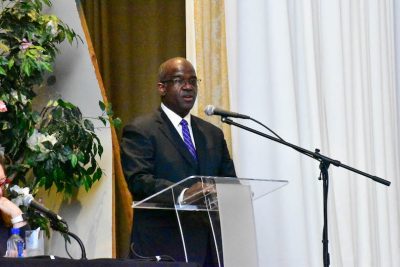 Westchester County Executive Ken Jenkins gives the kickoff speech at the Westfair Communications Real Estate Event. Photo by Diana Vollaro