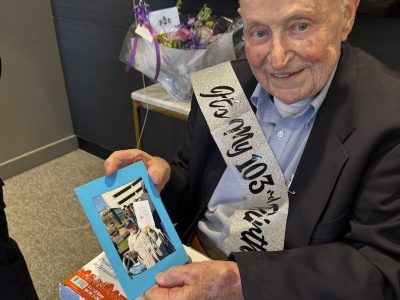 Centenarian Kurt Goldschmidt, 103, celebrates his birthday at Waterstone at Westchester. Photo courtesy of Waterstone at Westchester