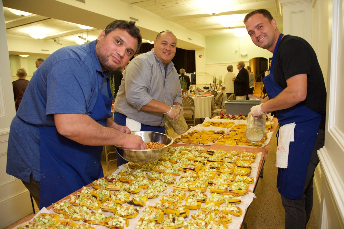 Volunteers, including students from Greenwich High School and Greenwich Country Day School, artfully served the next course created by Greenwich resident and private chef Juan Benitez, of Juan’s Table. This seasonal “Whole Harvest” appetizer featured delicata squash roasted in its skin, brushed with a glaze and stuffed with slivers of raw “ugly” apples donated by Woodland Farm, brussels sprouts, and its own roasted seeds so that no part of the vegetable went to waste.