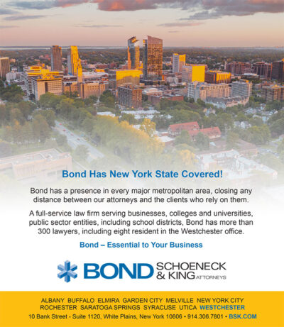 About 100 years ago, a reporter asked the famed bank robber, Willie Sutton, why he robbed banks. His quintessential reply was simple and direct. “That’s where the money is.” The Sutton Principle, which essentially is, “When you have a problem, look to the most obvious solution first,” has endured and in October of 2021, when Bond, Schoeneck & King (Bond), needed more space for its New York City office, the solution became opening a Westchester office in White Plains, because, as Sutton might have put it, “That’s where the business is.”